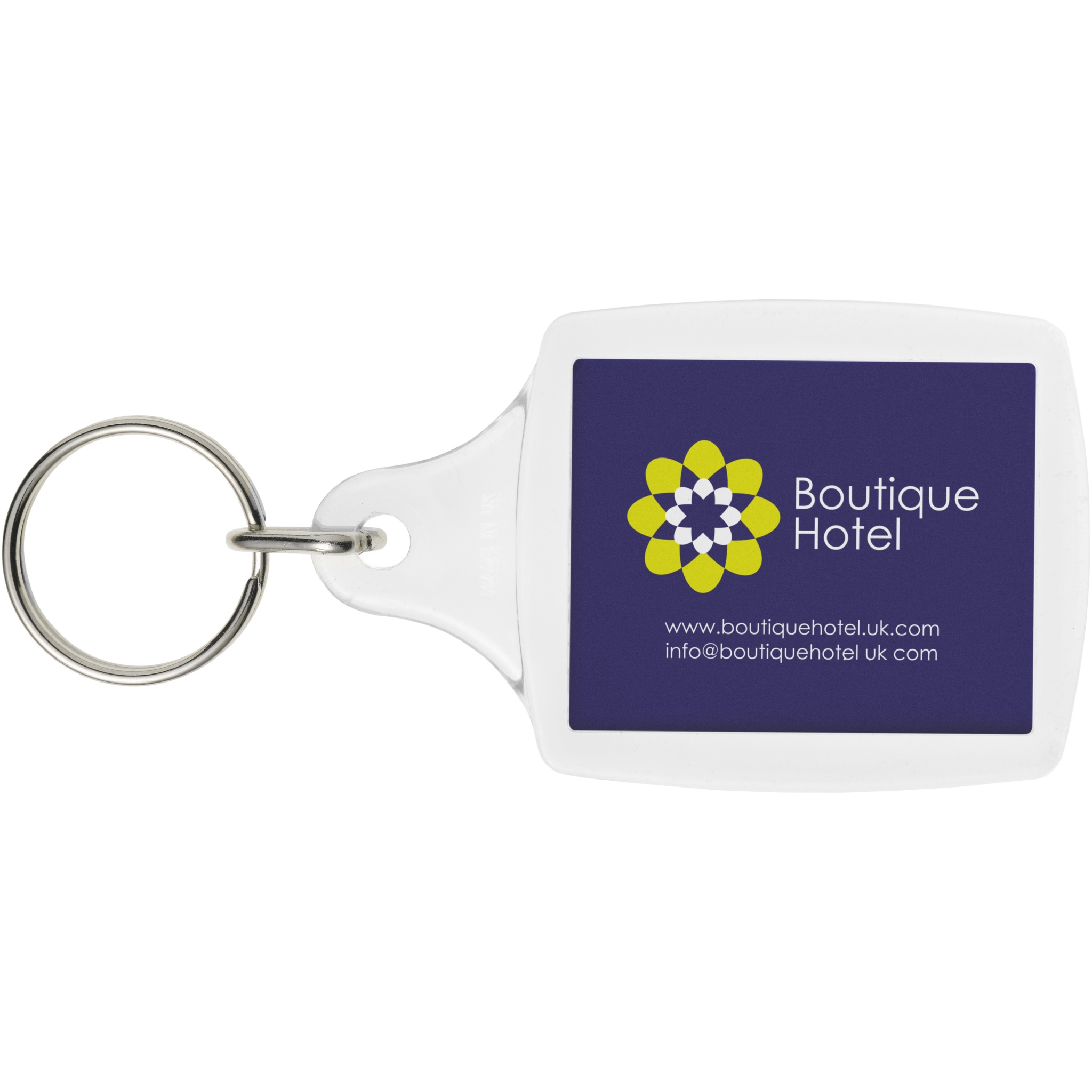 Clear A5 keychain with a metal split keyring. Designed to carry a paper insert or a passport photo. Print insert dimensions: 4,5 cm x 3,5 cm.