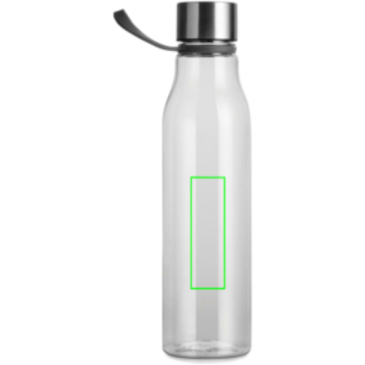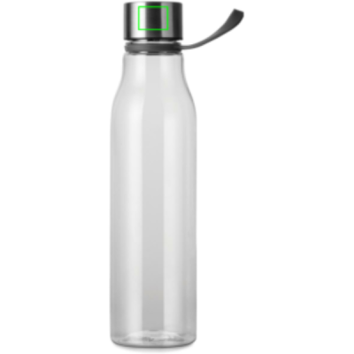 Water bottle made from BPA-free RCS certified recycled PET. With a generous 800 ML capacity, this bottle is ideal for workouts, travel, or whenever you need extra hydration. The loop doubles as a convenient handle, perfect for carrying on the go or hanging on exercise equipment. The ideal shape allows it to fit in most cup holders. Exclusively suitable for cold drinks. Handwash only. Certified by RCS (Recycled Claim Standard), this certification ensures that the entire supply chain for recycled materials is verified. The product contains 68% RCS certified recycled PET.
