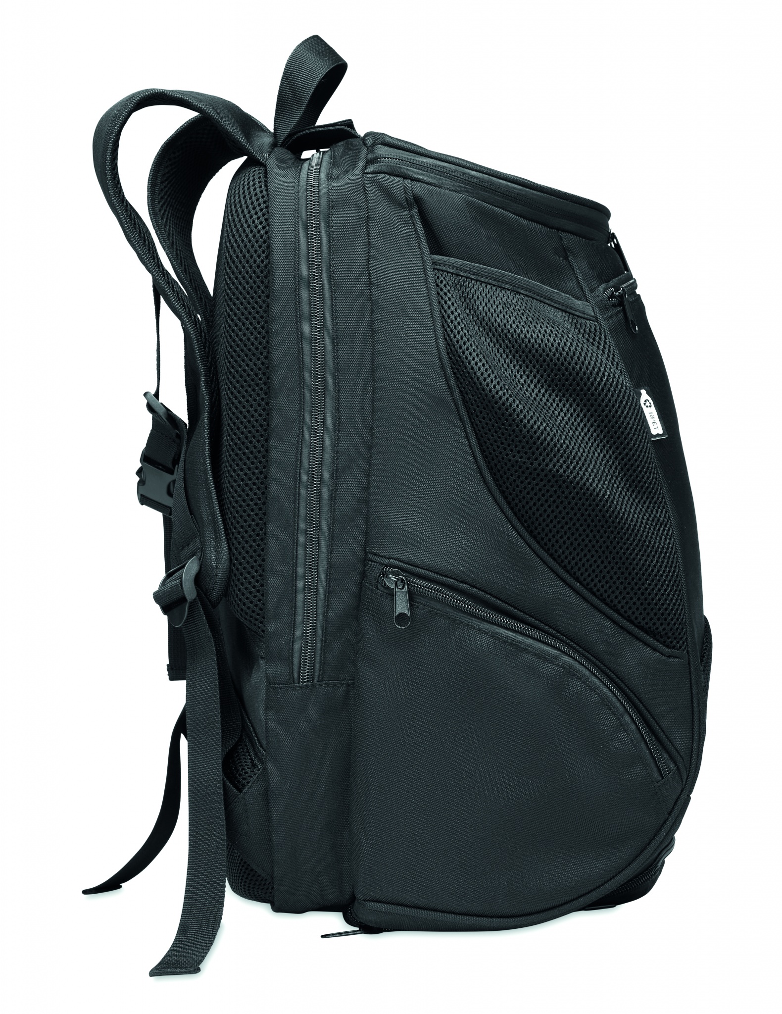 Multifunktsionaalne 600D RPET spordiseljakott mitme lahtriga (sh polsterdatud sahtel aereketi jaoks). Kaasas reguleeritav õlarihm.