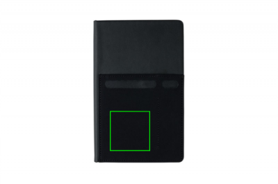 A5 märkmik, mille sees on 160 kreemikat joonitud lehte 80g/m2 paberist. Esikaanel on elastne telefonitasku, pliiatsitasku ja suurem varruktasku dokumentide jaoks. Telefonitasku on 8 cm lai, mis sobib iPhone 7 plussiga.