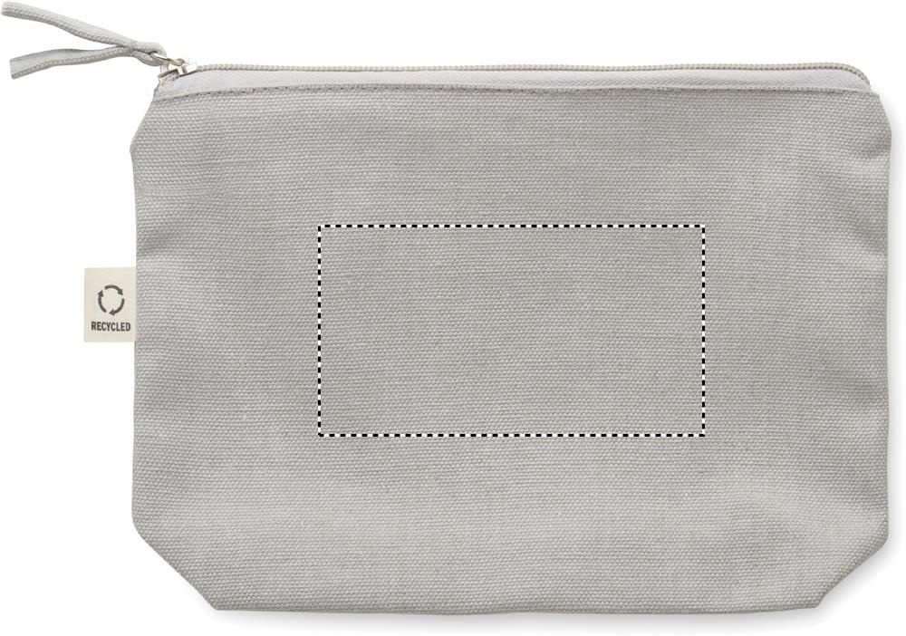 Kosmeetika- ja/või tarvikute kott taaskasutatud kangast (70% taaskasutatud puuvill ja 30% RPET polüester) koos sobiva tõmblukuga. 320 gr/m².