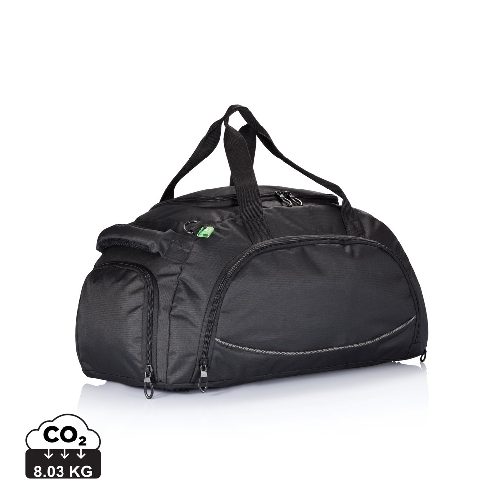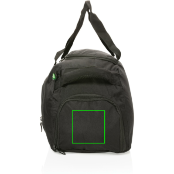600D ripstop, lukuga esitasku siseorganitega, küljetasku, kinga tasku, käepidemed ja õlarihm, 4 alusjalga, PVC-vaba.