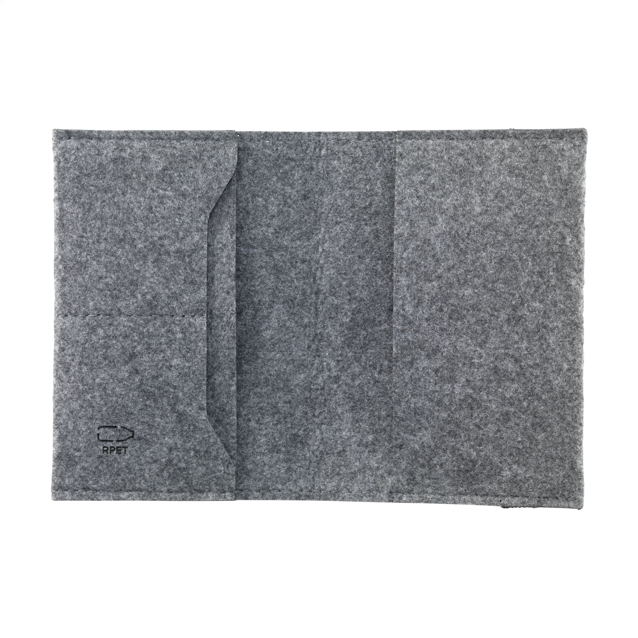 Vau! Passikate RPET-vildist (valmistatud taaskasutatud PET-pudelitest ja taaskasutatud tekstiilist). Ruumiga kaartide hoidmiseks ja varustatud elastse sulguriga. Sobib passi hoidmiseks, kandmiseks ja kaitsmiseks. GRS-sertifikaadiga. Kokku taaskasutatud materjal: 92%.