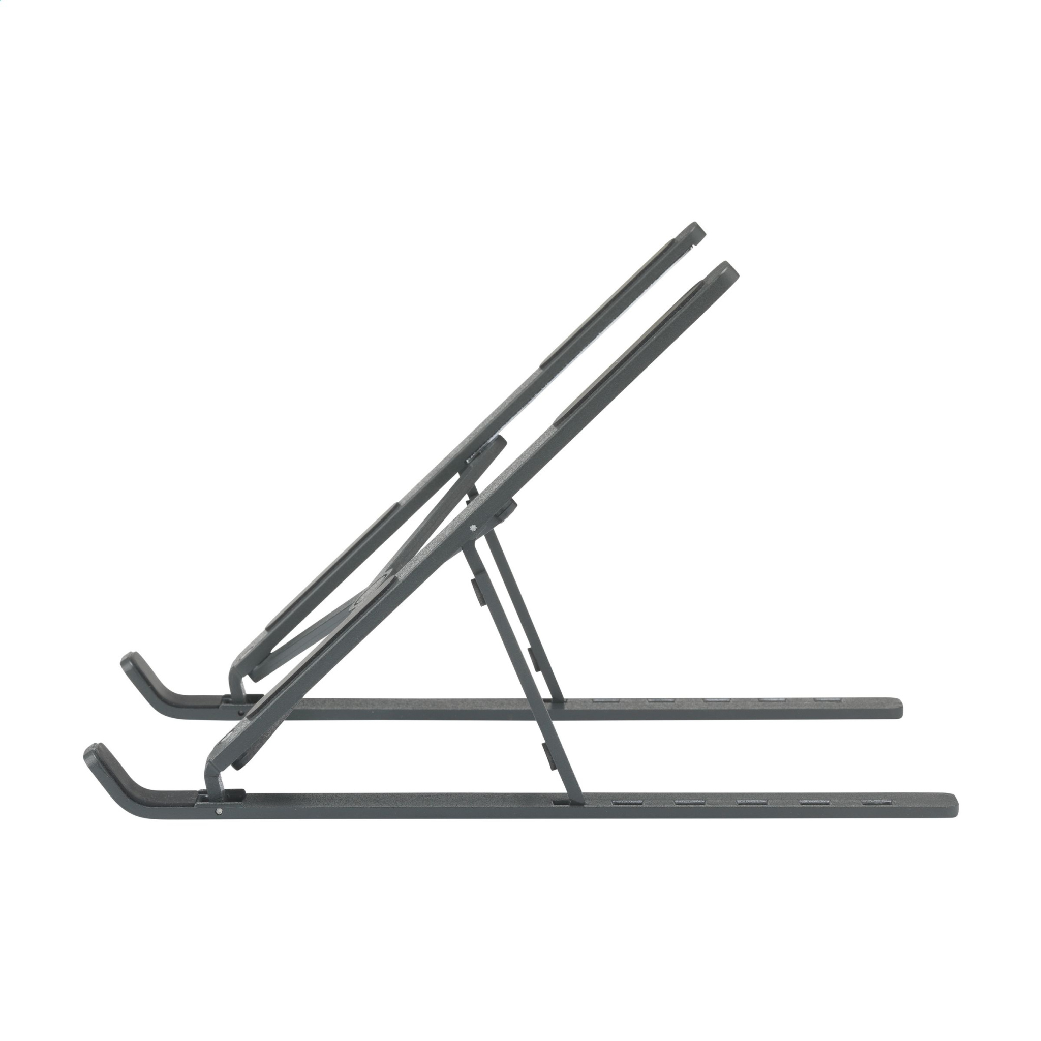 Vau! Reguleeritav sülearvuti alus, mis on valmistatud GRS-sertifikaadiga taaskasutatud alumiiniumist. Sülearvuti alus sobib sülearvutitele ja tahvelarvutitele (kuni 15,6 tolli). Reguleeritav 6 erineva kõrgusega. See aitab kaasa õigele ja mugavale tööasendile. Statiiv on kvaliteetne, kerge, libisemiskindel ja stabiilne. Stiilne avatud disain tagab hea ventilatsiooni. Kokkupandav kompaktseks pakendiks ja seetõttu lihtne kaasas kanda. Must-have, mis sobib igale töökohale. Kaasas froteetekstiilist kott. GRS-sertifikaadiga. Kokku taaskasutatud materjal: 91%. Kasutades taaskasutatud alumiiniumi, kasutatakse selle toote valmistamisel vähem uusi tooraineid. See tähendab väiksemat energiatarbimist ja vähem veekasutust. Vastutustundlik valik. Iga toode tarnitakse eraldi pruunis pappkarbis.