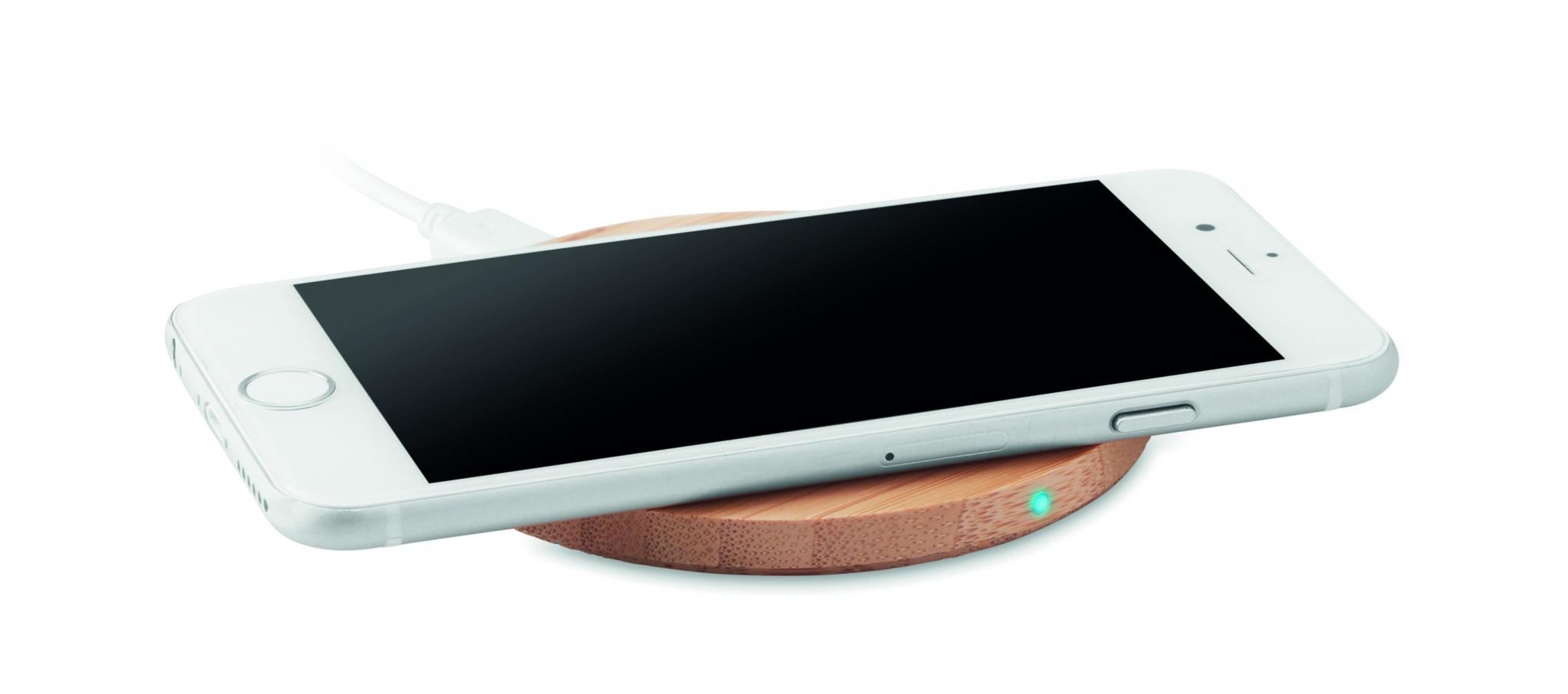 Logotrade firmakingi foto: Juhtmeta bambusest laadija 5W