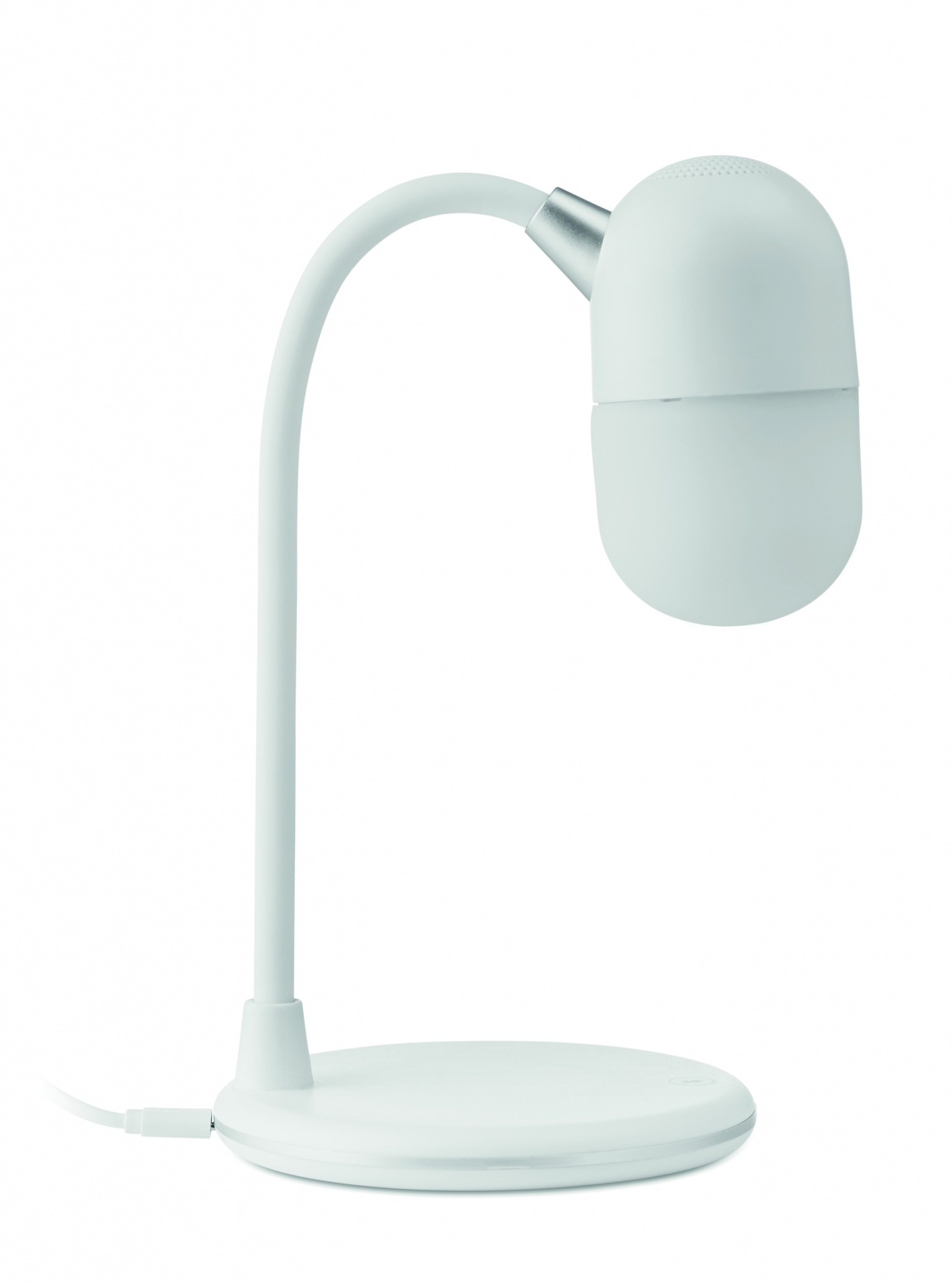 Juhtmevaba laadimisega kontorilamp 4.2 juhtmevaba kõlariga. Sellel on reguleeritav valgustugevus kolme tüüpi: päevavalgus, külm valgus ja loomulik valgus. Väljund: DC5V/1A (5W). Ühilduvad uusimad androidid, iPhone® 8, X ja uuemad.