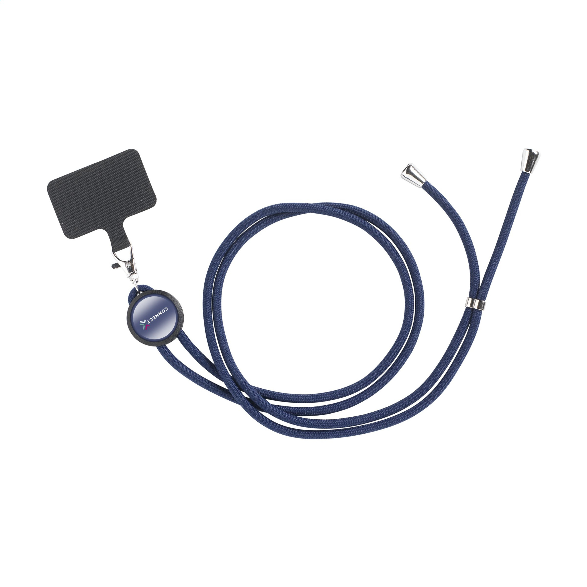 Reguleeritav telefonipael ümara juhtmega, mis on valmistatud 100% GRS RPET polüestrist. Metallist karabiini, reguleeritava alumiiniumist aasa ja stopperitega ning ümbertöödeldud plastikust ümmarguse sildiga. Universaalne plaaster võimaldab kinnitada nutitelefoni kaelapaela külge. Selle kombinatsiooniga saate oma nutitelefoni turvaliselt kaelas kanda. See tagab, et teil on telefon kiiresti käepärast ning saate hoida oma käed ja riidetaskud vabad. See plaaster ühildub enamiku nutitelefonide ja ümbriste kombinatsioonidega, kuid mitte avatud põhjaga ümbristega. Süsteem on loodud nii, et teie telefoni laadimisport ei oleks blokeeritud. GRS-sertifikaadiga. Kokku taaskasutatud materjal: 40%.