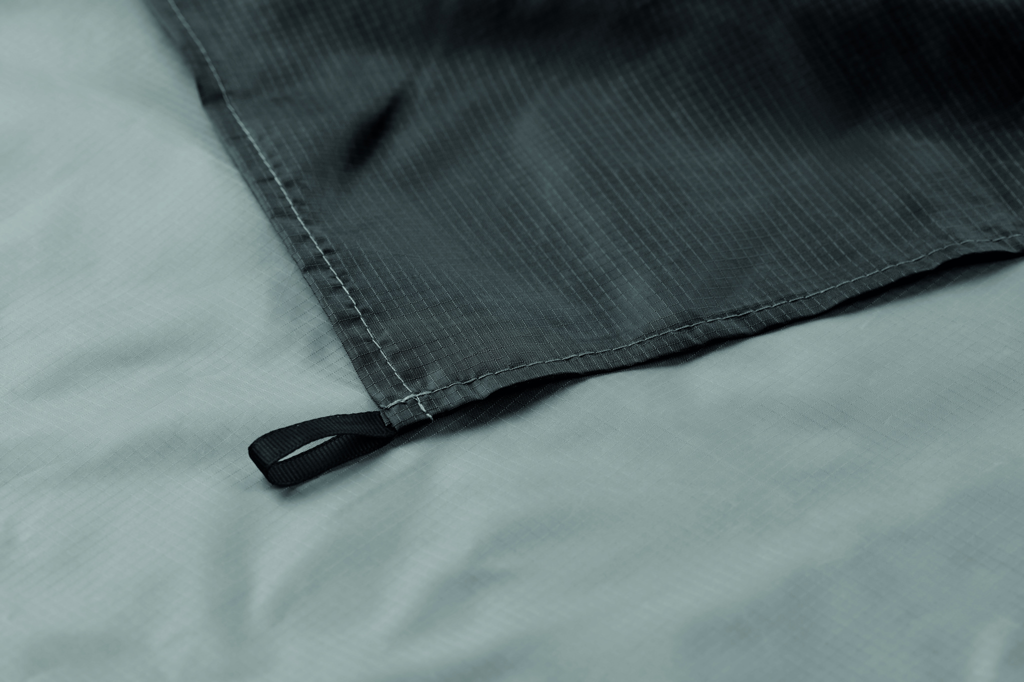 Kerge 210T polüestrist rannamatt, mõõtmetega 200x210 cm. Komplektis 4 musta konksu ja sobiv pingutusnööriga tasku mugavaks kaasaskandmiseks.