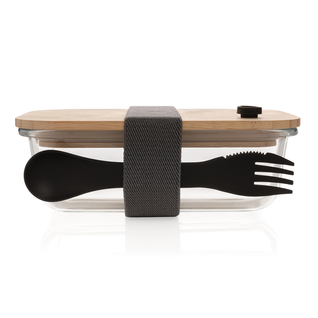 Logotrade reklaamtoote foto: Klaasist lõunakarp bambusest kaanega