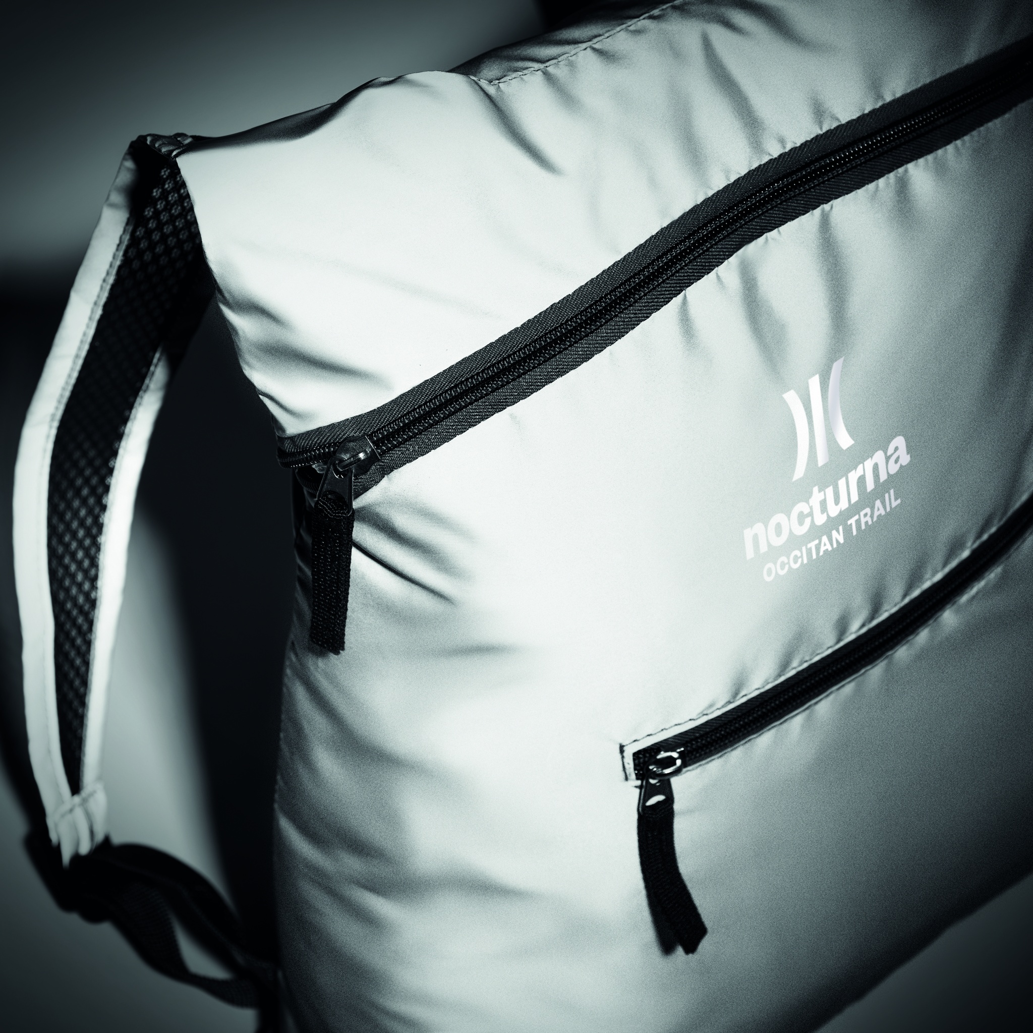 Kokkupandav spordiseljakott tugevalt peegeldavast 190T polüestrist lukuga esitaskuga. Reguleeritavad õlarihmad.