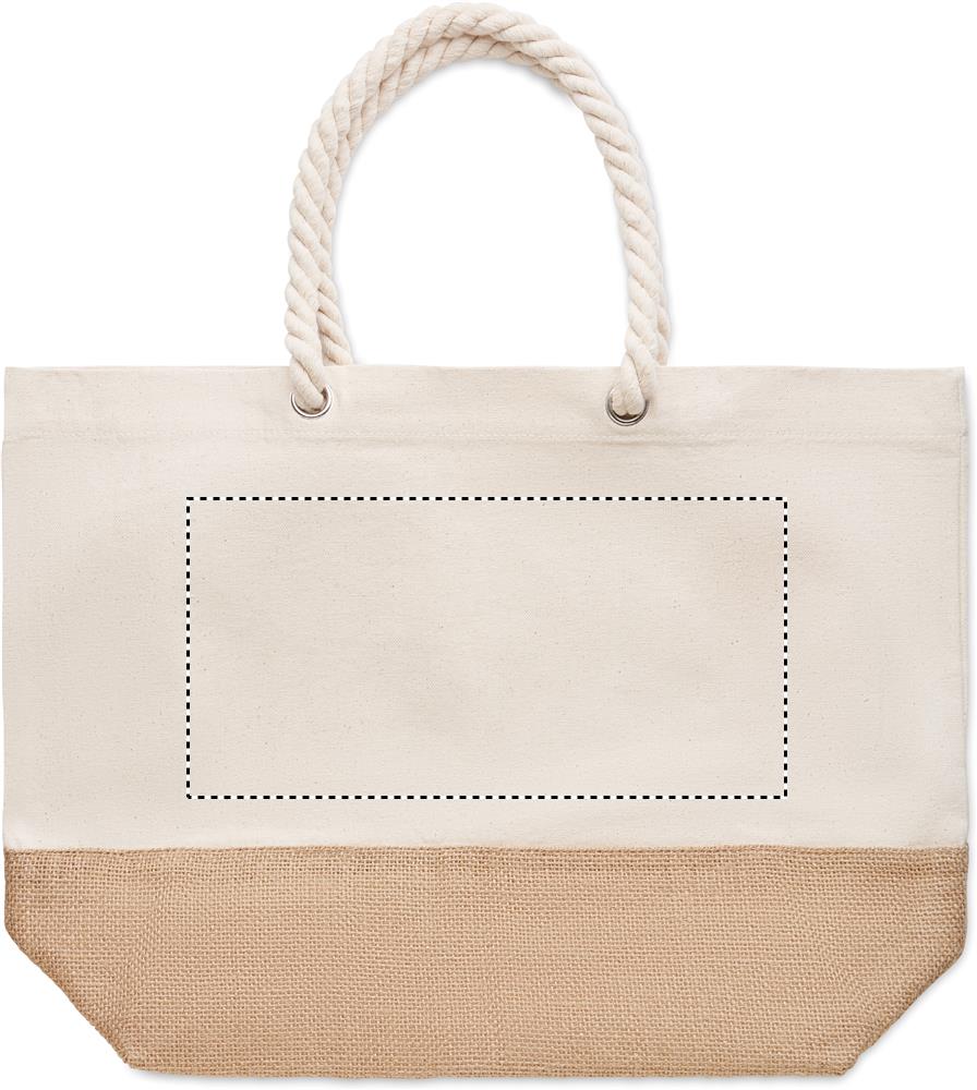 Rannakott või poekott lõuendist nööri käepideme ja džuudist detailiga. 280 gr/m².