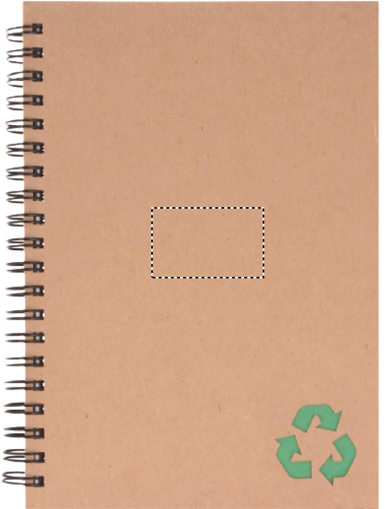 Taaskasutatud kartongist kaanega märkmik. Kahejuhtmeline. 140 joonega mineraalpaberilehte (70 lehte). Mineraalpaber on valmistatud kaltsiumkarbonaadist ja HDPE-st (polüetüleenvaigust), mida kasutatakse sideainena. See on veekindel ja rasvakindel.