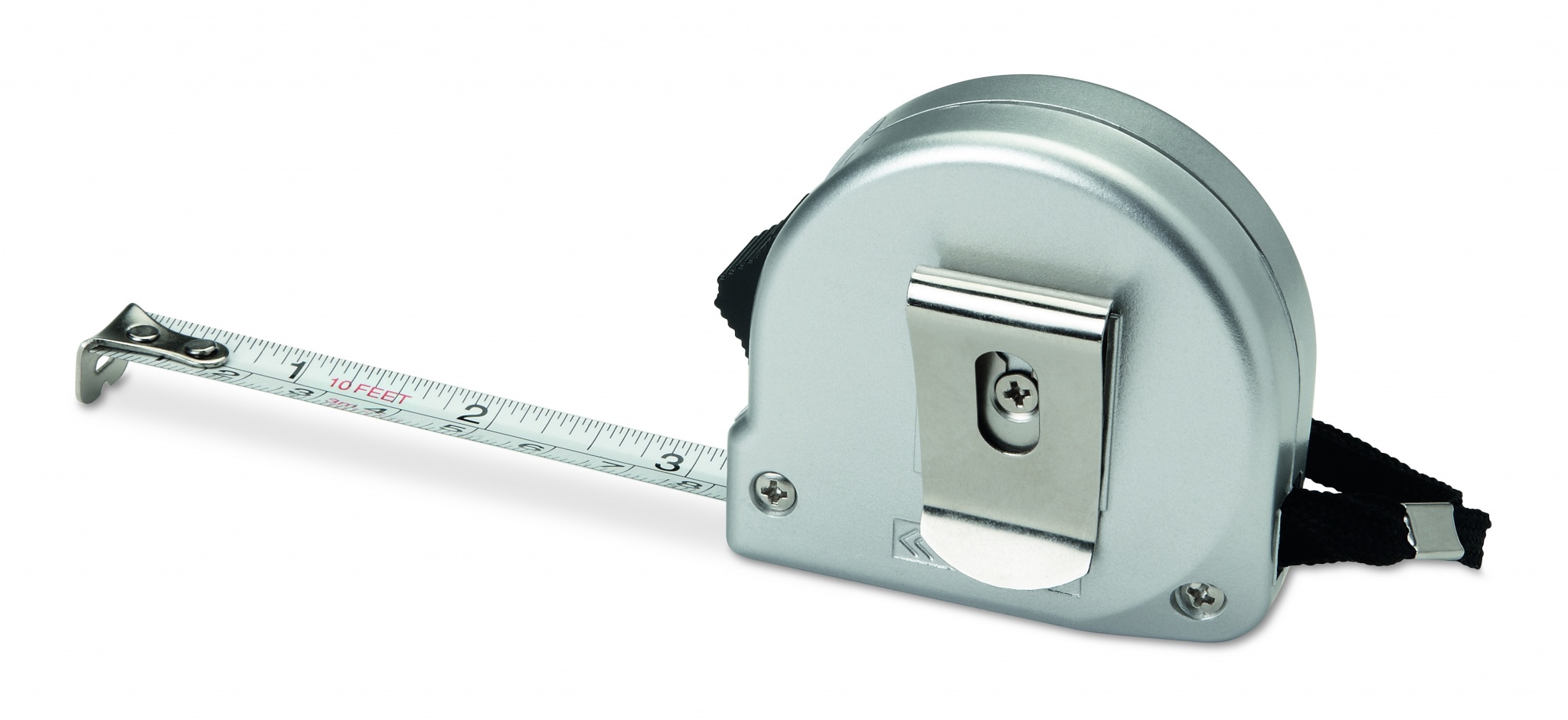 2m ABS mõõdulint mattis hõbedases korpuses. Kaasas käerihm ja läikiv hõbedane metallklamber.