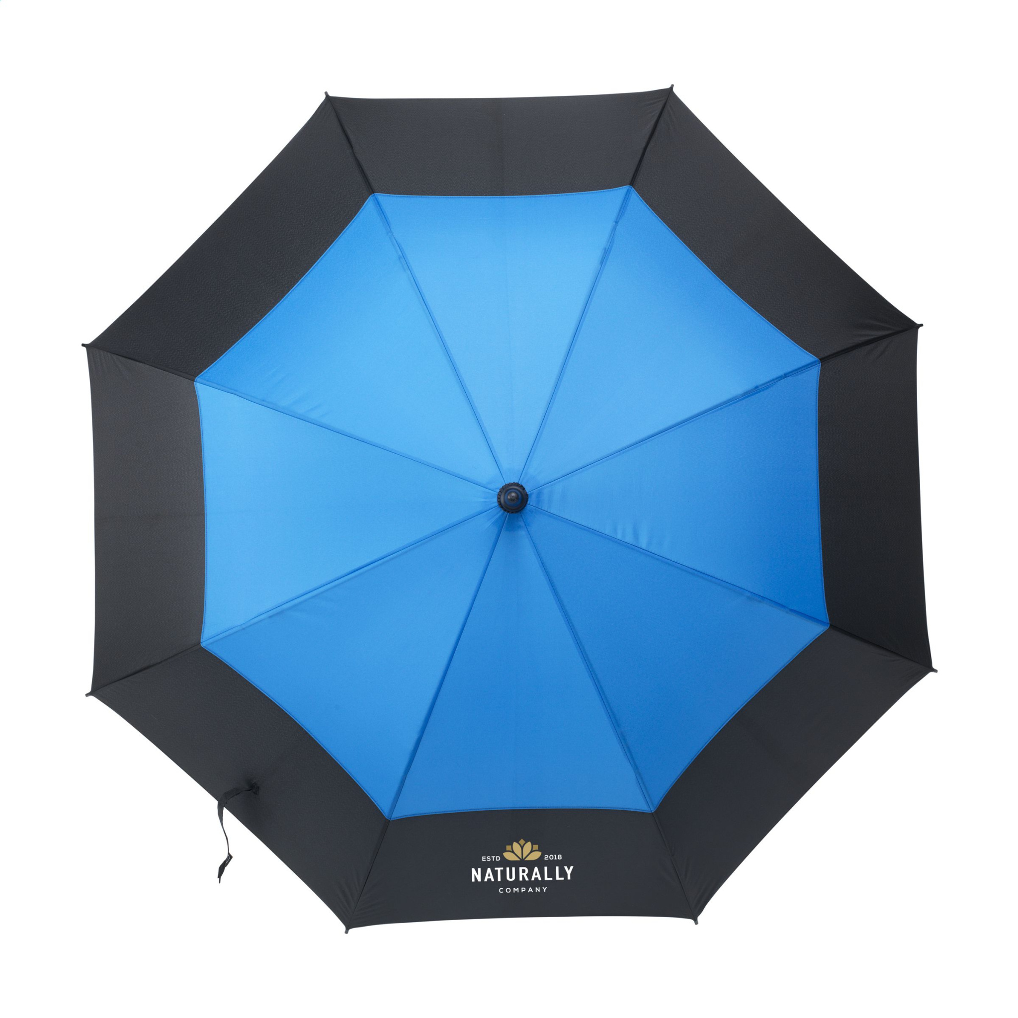 Vau! Kahes värvitoonis varikatusega vihmavari, valmistatud 190T RPET polüestrist. Sellel silmatorkaval vihmavarjul on eriti suur ekraani läbimõõt, vähemalt 120 cm. Automaatse teleskoopvedrustusega (automaatselt avanev), klaaskiust raami ja käepidemega, EVA pehme vahtmaterjalist käepideme katte ja takjakinnitusega. See vihmavari on osaliselt valmistatud taaskasutatud PET-pudelitest.