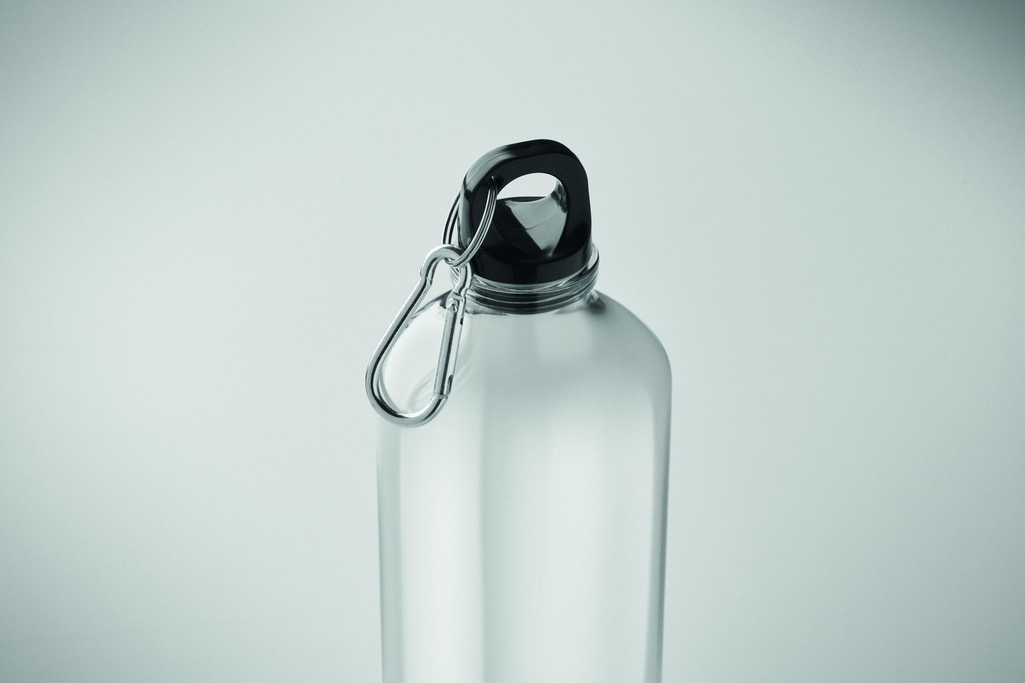 Suur RPET-plastikust joogipudel karabiiniga. Mahutavus: 750 ml.