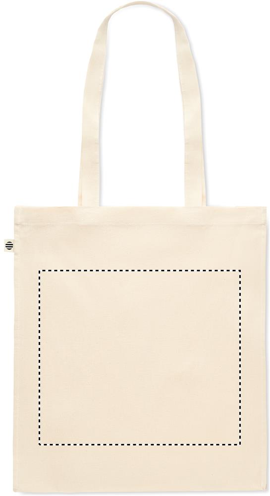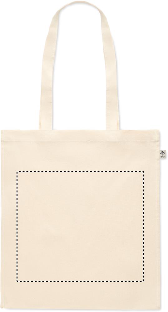 Orgaanilisest puuvillast ostukott pikkade sangade ja kinnitustega. 140 gr/m².