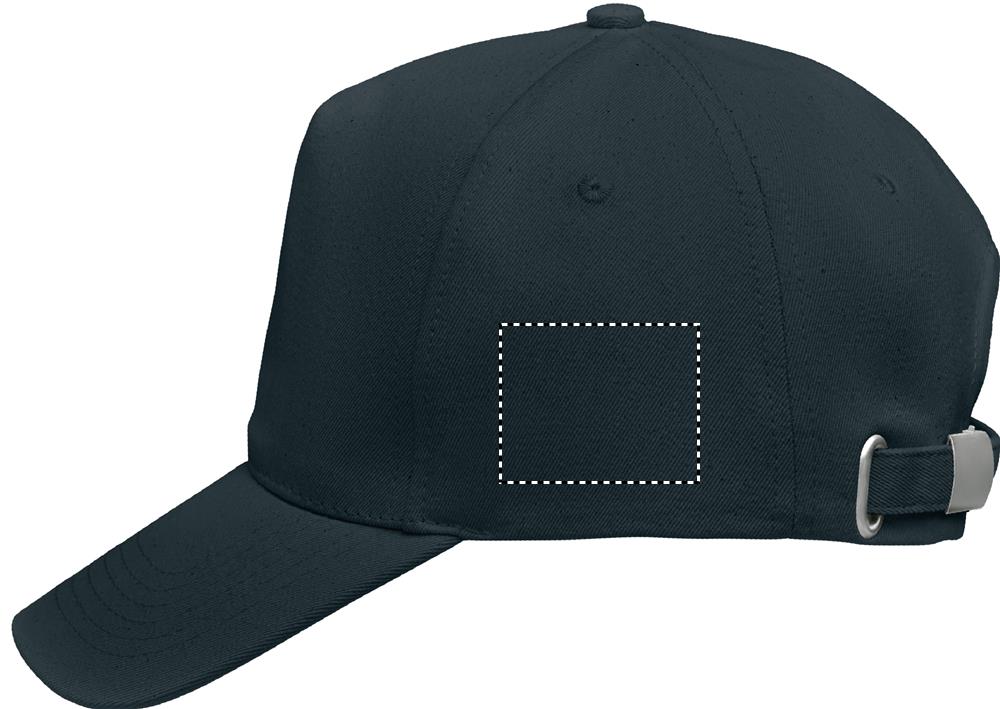 5-paneeliline pesapallimüts 250 gr/m² orgaanilisest harjatud puuvillast, metallist reguleeritava rihmaga seljapandlaga.