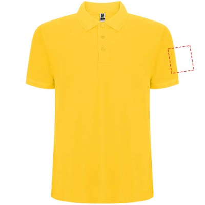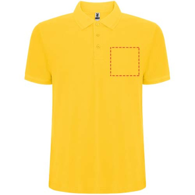 Lühikeste varrukatega polosärk. Krae ja varrukate ääris detailidega 1x1 soonikust kangast. 3-nupuline plokk. Tugevdatud kaetud õmblused kraes. Külgmised lõhikud ja valikuline tasku. Eemaldatav etikett. Pillimisvastane ravi.