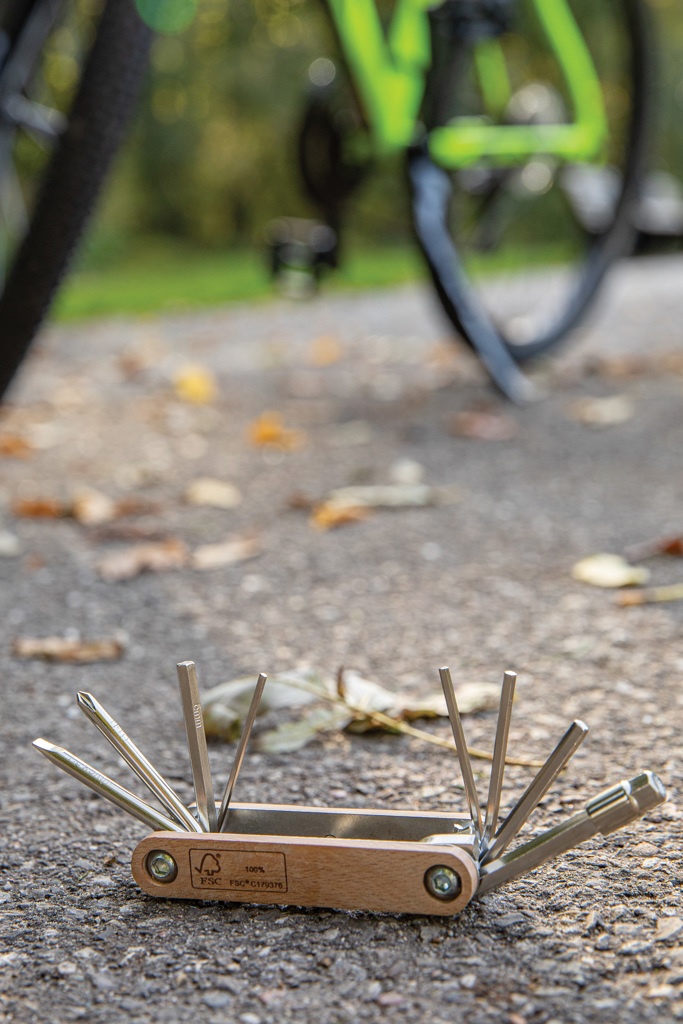 HEX-tööriist on valmistatud FSC 100% pöögipuidust ning kõrge kõvadusega ja korrosioonikindlast süsinikterasest (#45). Rockwelli kõvadus 40-45. Tootel on 9 funktsiooni: kuuskantvõti 5,5 mm; Kuuskantvõti 2mm; Kuuskantvõti 2,5 mm; Kuuskantvõti 3mm; Kuuskantvõti 4mm; Kuuskantvõti 5 mm; Kuuskantvõti 6mm; Philipsi kruvikeeraja; Lame kruvikeeraja. Pakitud FSC mix kraft karpi.