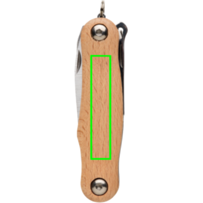 Kompaktne ja tugev taskunuga 9 funktsiooniga. Pöögipuidust korpuse ja kvaliteetsete roostevabast terasest tööriistadega. Tööriistade hulka kuuluvad: nuga, sakiline lõikur, käärid, viil, saag, õmblustööriist, konksu eemaldaja, ristkruvikeeraja, lamekruvikeeraja. Pakitud kinkekarpi.