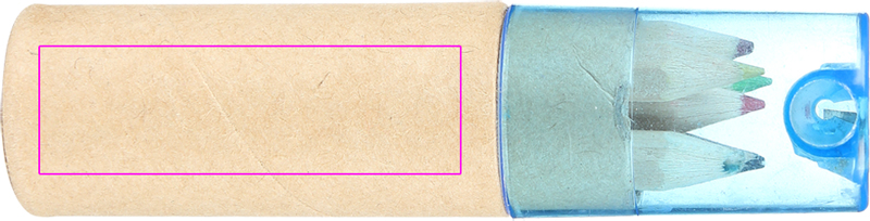 Pappkarp kuue lühikese paksu värvipliiatsi ja sinise läbipaistva plastikkaanega integreeritud teritajaga. Prindime kastile teie logo.