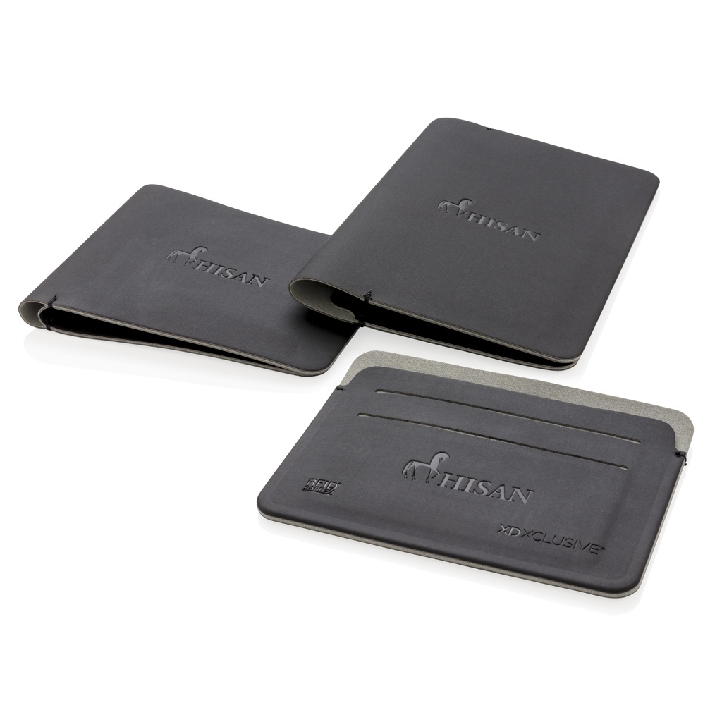 See üliõhuke, kerge ja turvaline RFID-kaardihoidja on ainulaadse kaasaegse disainiga. RFID-d blokeeriv materjal kaitseb identiteedivarguste ja elektrooniliste taskuvarguste eest. 4 lihtsa juurdepääsuga kaardipesa mahutavad kuni 8 kaarti. Registreeritud disain®