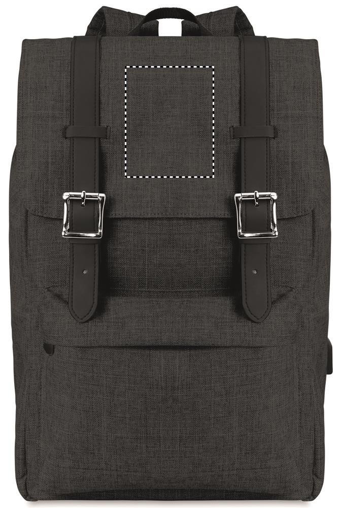 Sülearvuti seljakott 600D 2-toonist polüestrist polsterdatud õlarihmaga, mis sisaldab ühte peamist sisemist sahtlit 15-tollise sülearvuti jaoks ja USB-laadimiskaablit. Kaasas magnetnööbiga kinnis ja üks lukuga esiosa.