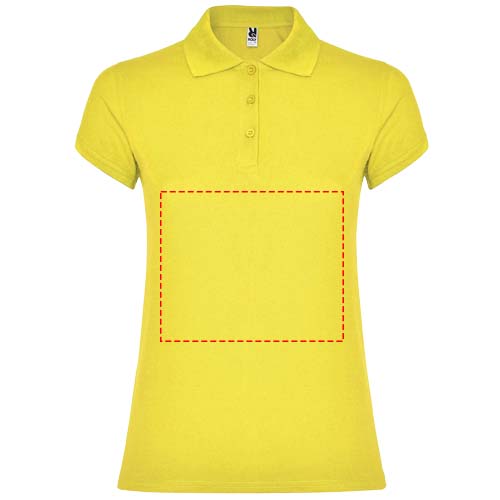 Lühikeste varrukatega polosärk naistele. Sisekrae tugevdatud kaetud õmblused. 1x1 soonik krae ja kätised. Küljeõmblused ja liibuv lõige. Kitsas 3-nupuline plekk. Külgmised pilud. Eemaldatav etikett. Modell on 179 cm pikk ja kannab suurust S.
