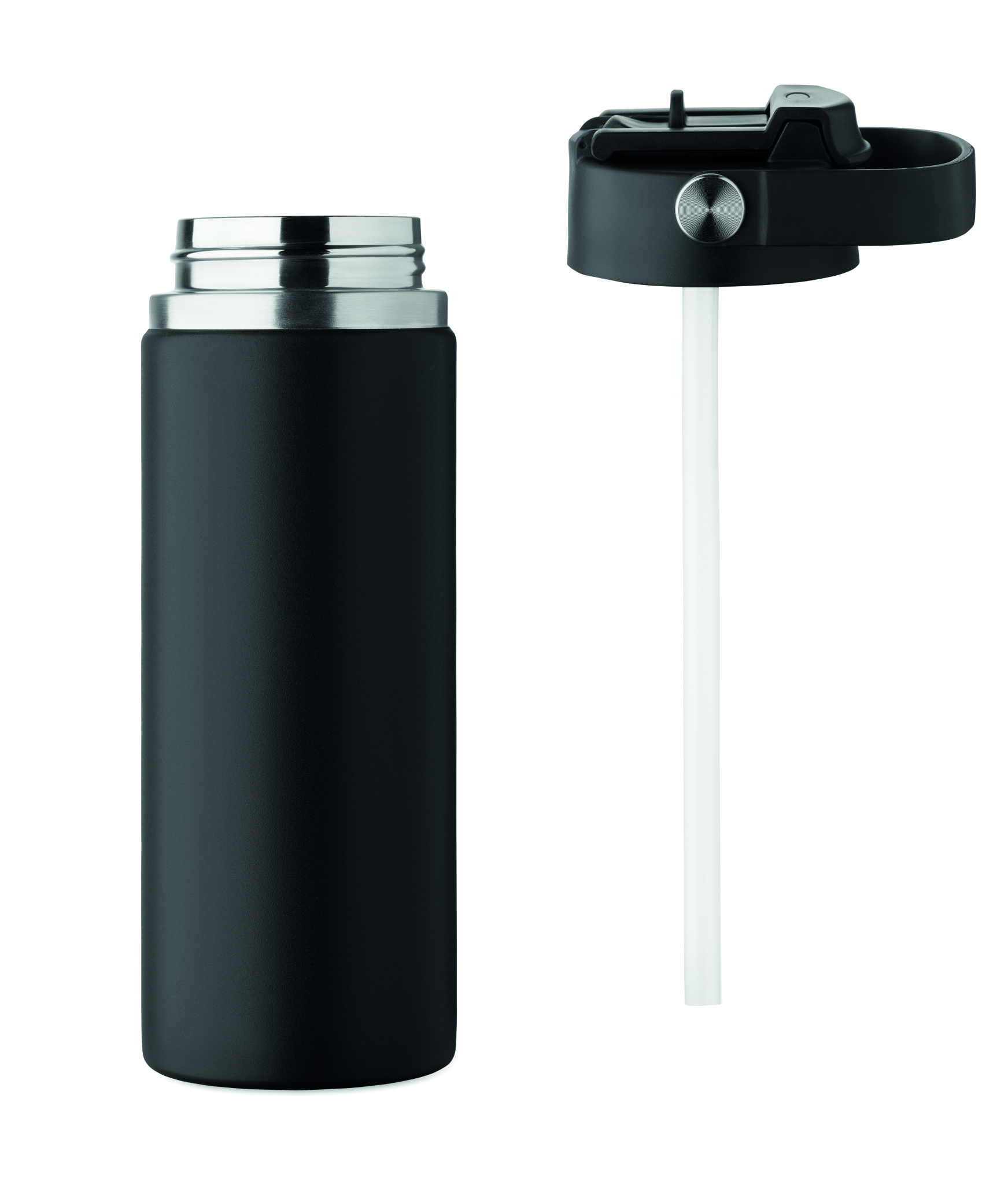 Topeltseinaga joogipudel taaskasutatud roostevabast terasest (90% taaskasutatud roostevaba teras ja 10% roostevaba teras), millel on kombineeritud kõrs ja sangaga kaas. Lekkekindel. Maht: 500 ml.