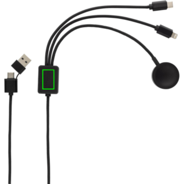 Logo trade ärikingi pilt: Terra RCS rPET 6-in-1 laadimiskaabel koos kellalaadijaga