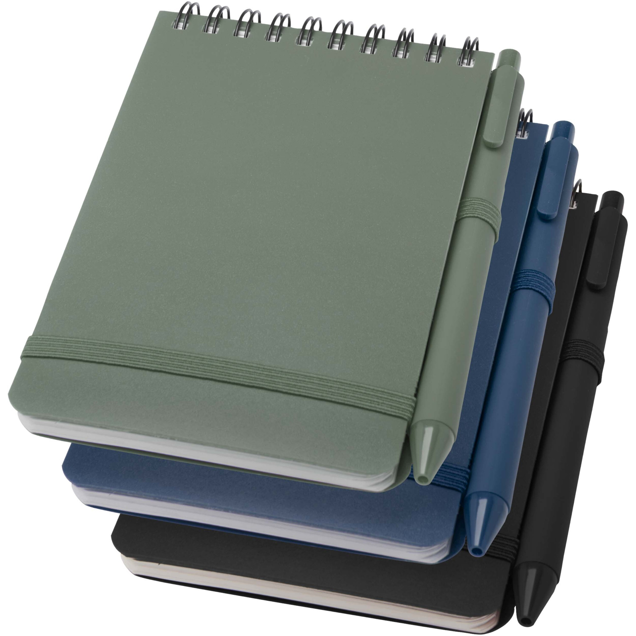 Thalaasa A6 kõvakaaneline sülearvuti on valmistatud ookeaniga seotud taaskasutatud plastist ja sisaldab 80 vooderdatud lehte 70 g/m² kreemjavärvilist paberit. Märkmikul on ümarad nurgad, elastne sulgur ja pliiatsi aas. Musta tindiga pastapliiats on samuti valmistatud ookeaniga seotud taaskasutatud plastist. Kirjutamise pikkus: 1000 meetrit. Otsa suurus: 1,0 mm.