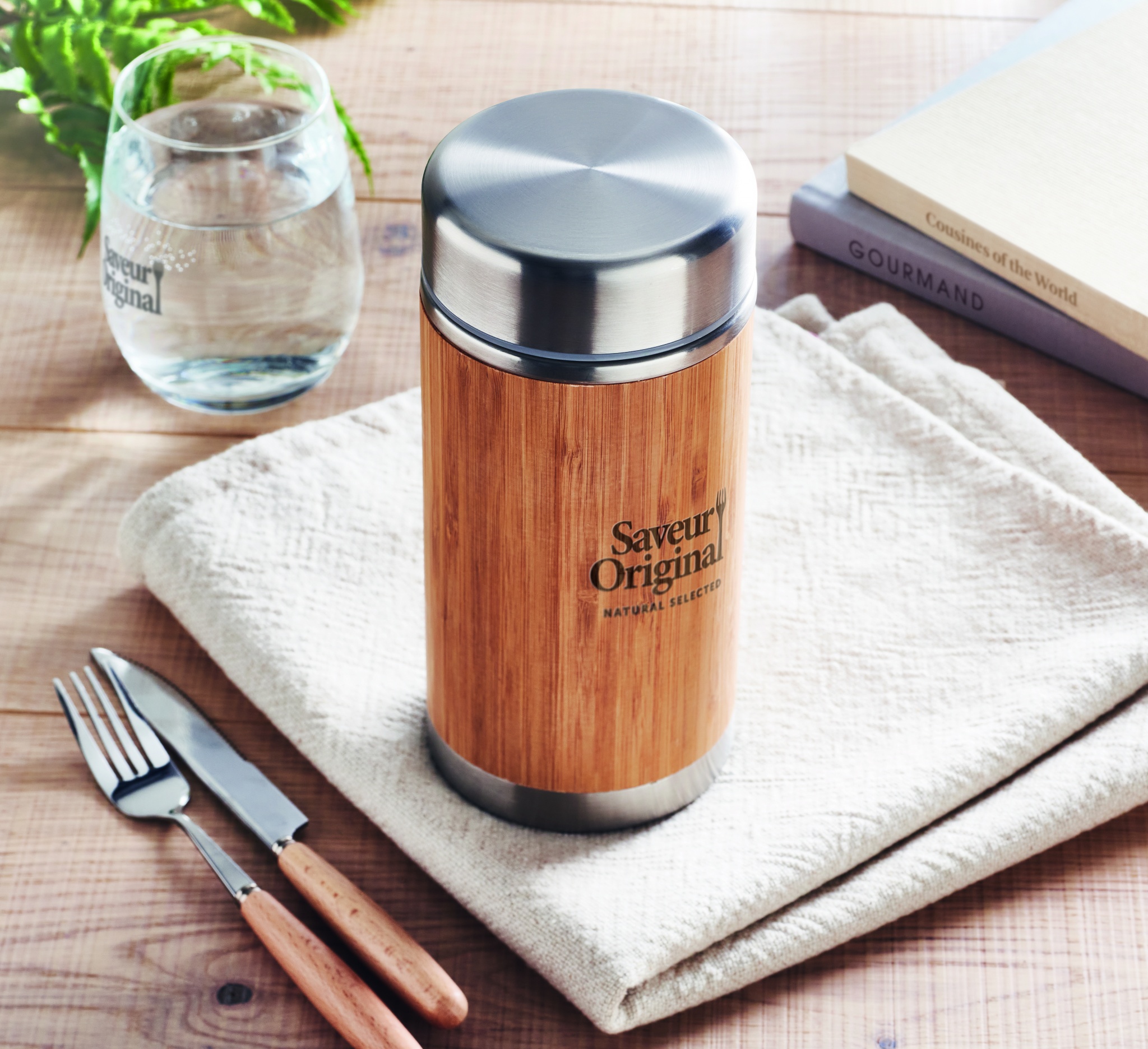 Kaheseinaline roostevabast terasest isolatsiooniga toidupurk, bambusest viimistlusega keeratava korgiga. Mahutavus: 600 ml. Bambus on looduslik toode, ühe eseme värvis ja suuruses võib esineda väikesi erinevusi, mis võivad mõjutada lõppviimistlust.