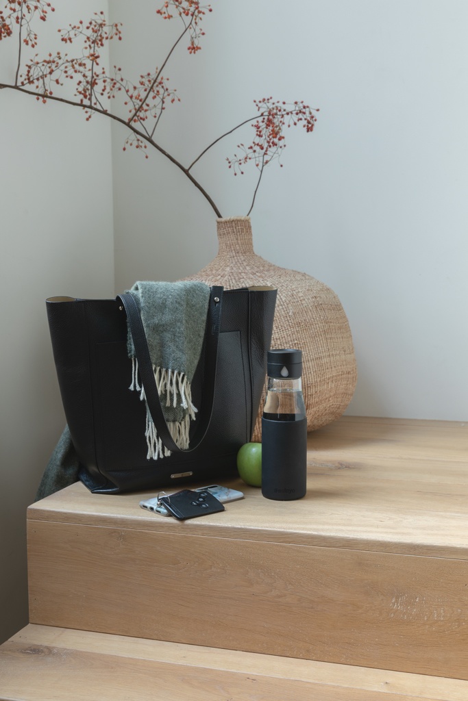 Jälgige oma igapäevaseid niisutuseesmärke selle nutika disainiga Ukiyo borosilikaatklaasist 600 ml veepudeliga. Kaanel kuvatakse suurem veetilk iga kord, kui krae uuesti täidate ja keerate, nii et saate hõlpsalt joodikute pudelite arvu lugeda. Korpus on nõudepesumasinas pestav. Lekkekindel. Registreeritud disain®
