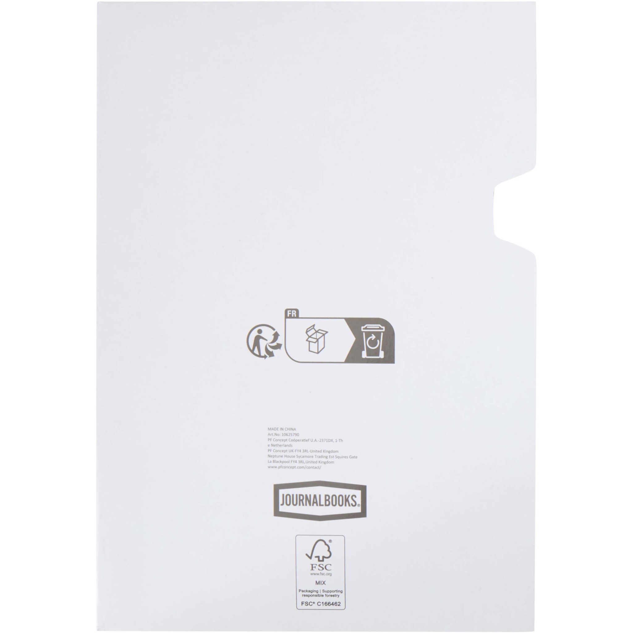 A5-kokoinen Alder-muistikirja on valmistettu kierrätetystä nahkamaisesta muovista, ja se sisältää 192 arkkia kermanväristä 80 g/m²:n paperia päiväkirja-asettelulla, joka sopii täydellisesti päiväkirjan pitämiseen ja järjestyksessä pysymiseen ympäri vuoden. Mukana tulee kaksi kuminauhaa, kolme kirjanmerkkinauhaa (musta, punainen ja sininen), 200 värikästä pientä tarralappua (40 kutakin väriä) ja kätevä paperitasku irtolapuille. Takakannessa kohokuvioitu JournalBooks-logo. Toimitetaan valkoisessa paperitaskussa.