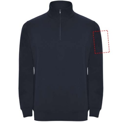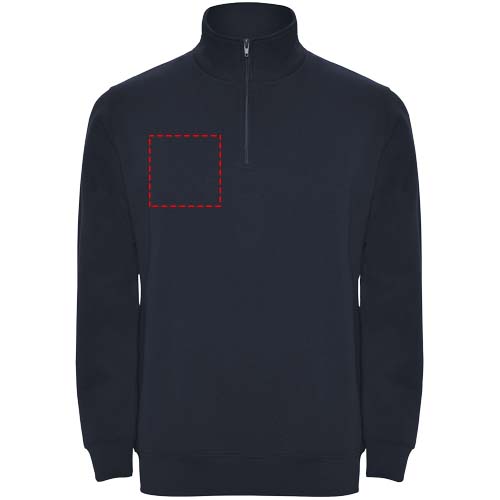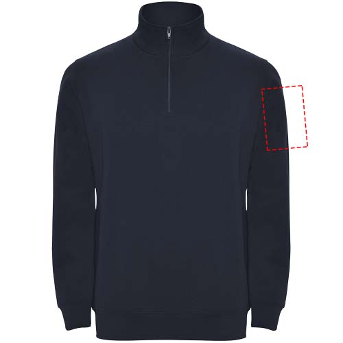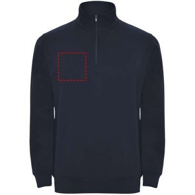 Collegepaita saman sävyisellä puolivetoketjulla ja korkealla kauluksella. Kauluksen sisäpuoli saman sävyinen. Kauluksen sisäpuolella vahvistettu sauma. Hihansuut ja vyötärö ribbineulosta 1x1. Kuvan malli on 185 cm pitkä ja hänellä on päällään koko M.