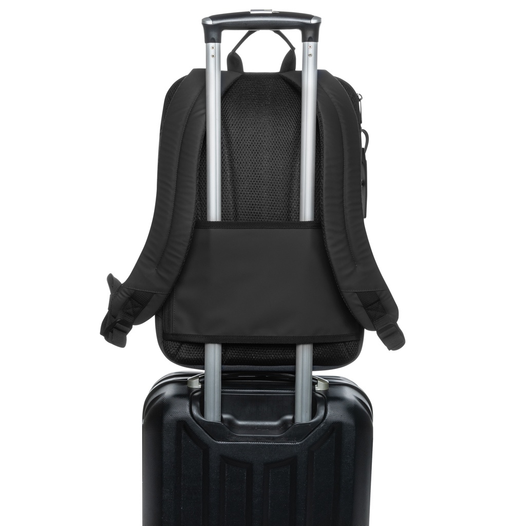 Siisti muotoilu tekee repusta erittäin monipuolisen ja ihanteellisen työhön tai vapaa-aikaan. Se on tarpeeksi tyylikäs kokoushuoneeseen, mutta silti se tarjoaa kaiken mukavuuden kuten perinteinen reppu. Suojaa 15,6" kannettavaasi erillisellä pehmustetulla lokerolla. Löydä välttämättömät tarvikkeesi, kuten passi, lippu tai älypuhelin kätevän, helposti avattavan ylätaskun avulla. Sisäiset verkkotaskut pitävät pienet välttämättömät tavarasi järjestyksessä. Sivussa on matkatavaralappu. Valmistettu kierrätetystä polyesteristä, johon on upotettu AWARE™-jäljitysainetta. Jokaisen myydyn AWARE™ tuotteen voitosta 2% lahjoitetaan Water.org:lle. PVC-vapaa.