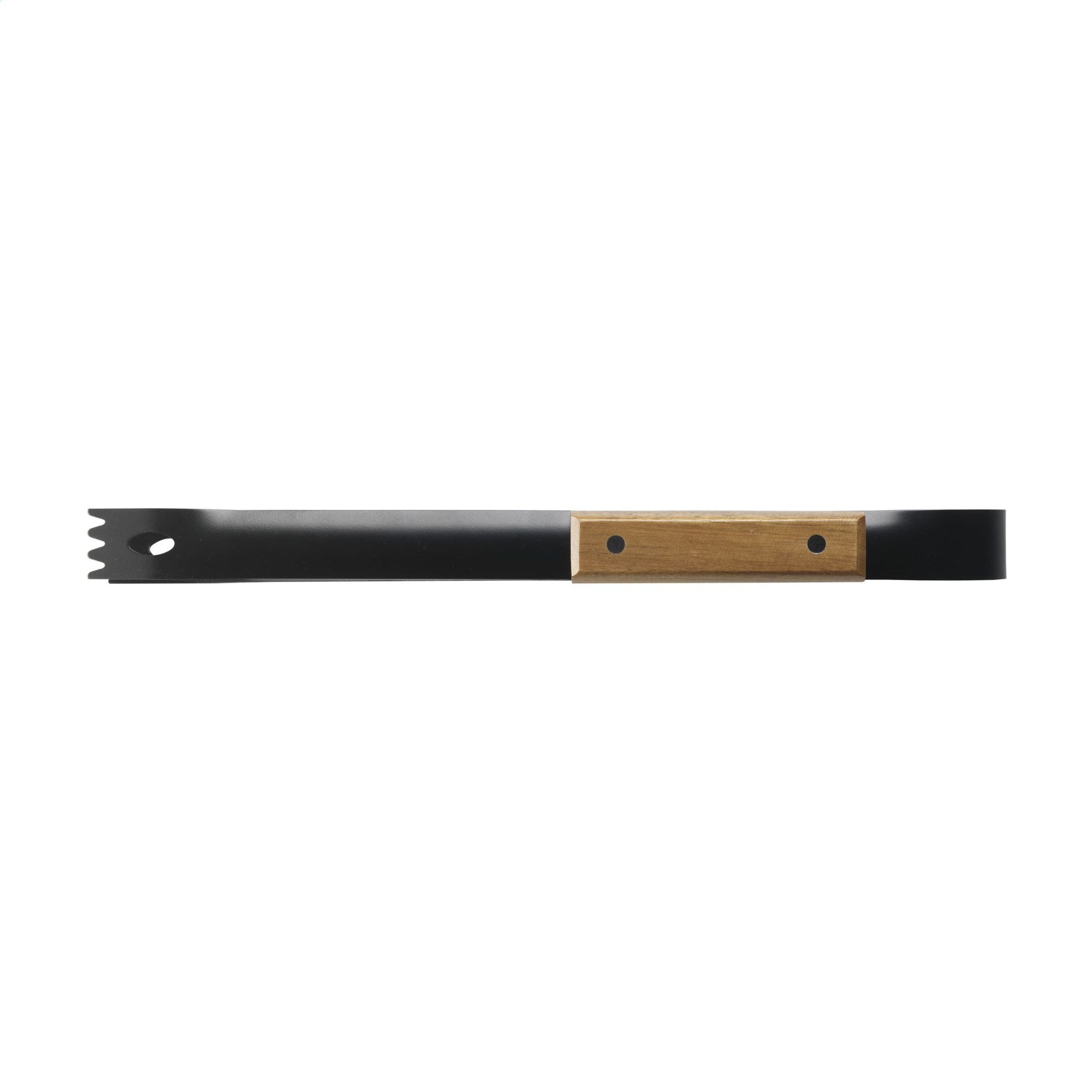4-osainen grillisarja: lasta, haarukka, veitsi ja lihapihdit. Ruostumattomassa teräksessä on kaunis, musta pinnoite ja lisävarusteissa kahvat akaasiapuusta. Tämä tyylikäs setti toimitetaan 600D nylonpussissa.
