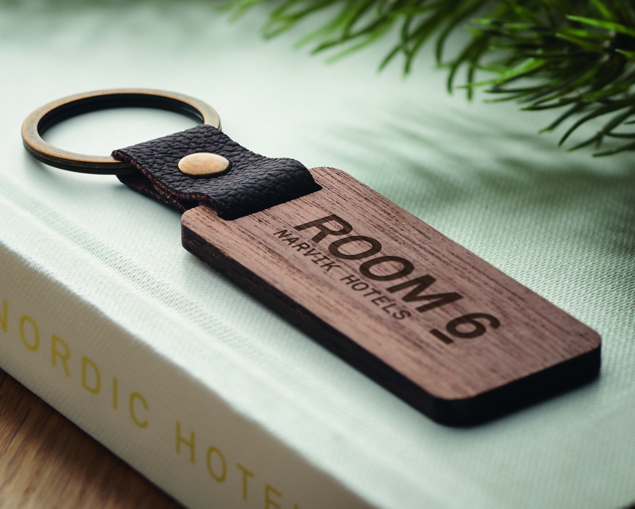 Logo trade liikelahja mainoslahja tuotekuva: Avaimenperä pähkinäpuuta ja PU Kokkola