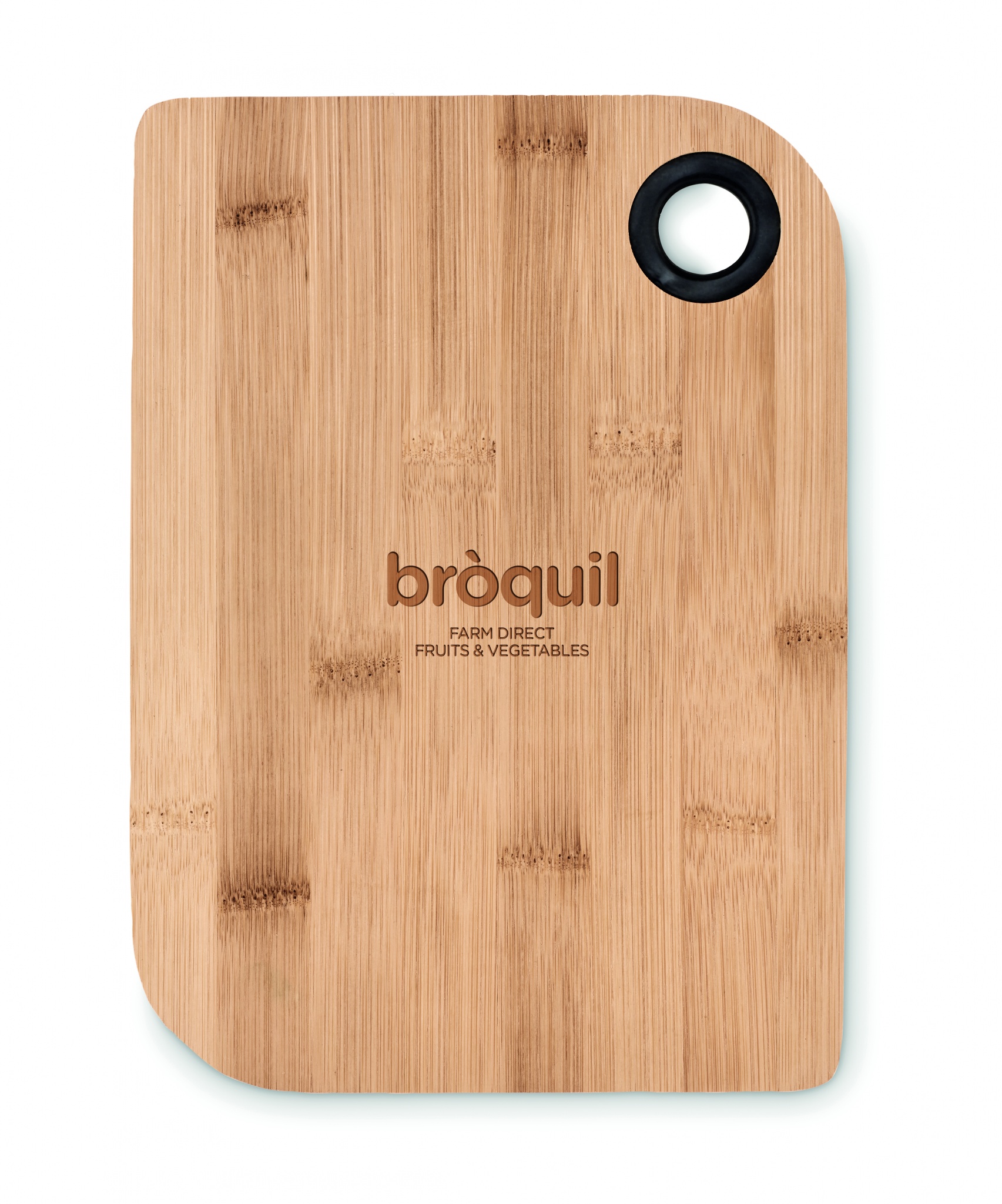 Leikkuulauta bambusta, reikä tuotteen ripustamista varten. Luonnollisen materiaalin (bambu) vuoksi, tuotteiden värissä/ koossa saattaa olla erinäisyyksiä ja tämä voi vaikuttaa painatuksen lopputulokseen.