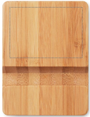 Älypuhelimen jalusta bambusta. Luonnollisen materiaalin (bambu) vuoksi, tuotteiden värissä/ koossa saattaa olla erinäisyyksiä ja tämä voi vaikuttaa painatuksen lopputulokseen.