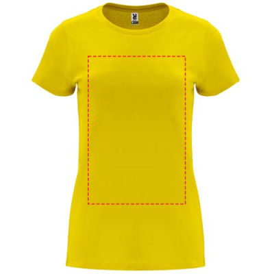 Lyhythihainen ja muotoiltu naisten t-paita. 1x1 resorikankainen pyöreä kaula-aukko. Vahvistettu sauma pääntiessä. Irrotettava tuotemerkki.