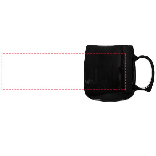 Kestävä, yksiseinäinen muovimuki. Tilavuus on 300 ml. Tehty Isossa-Britanniassa.