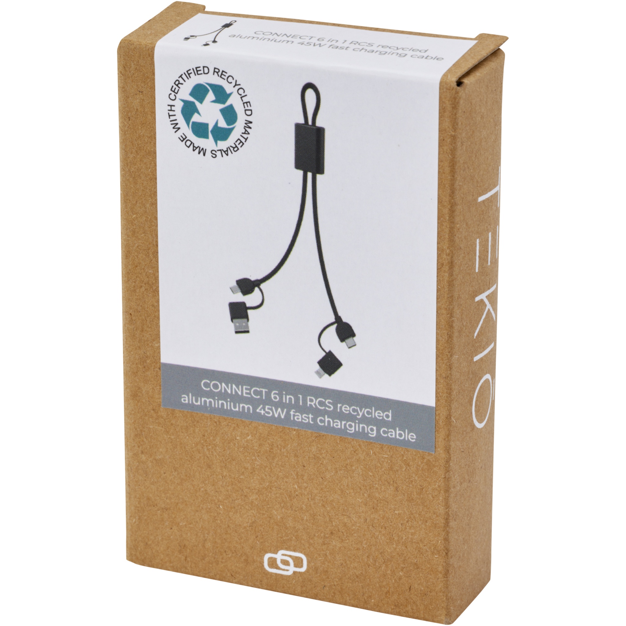 Logo trade liikelahjat tuotekuva: Connect 6-in-1 pikalataus- ja datasiirtokaapeli 45 W RCS-kierrätetystä alumiinista