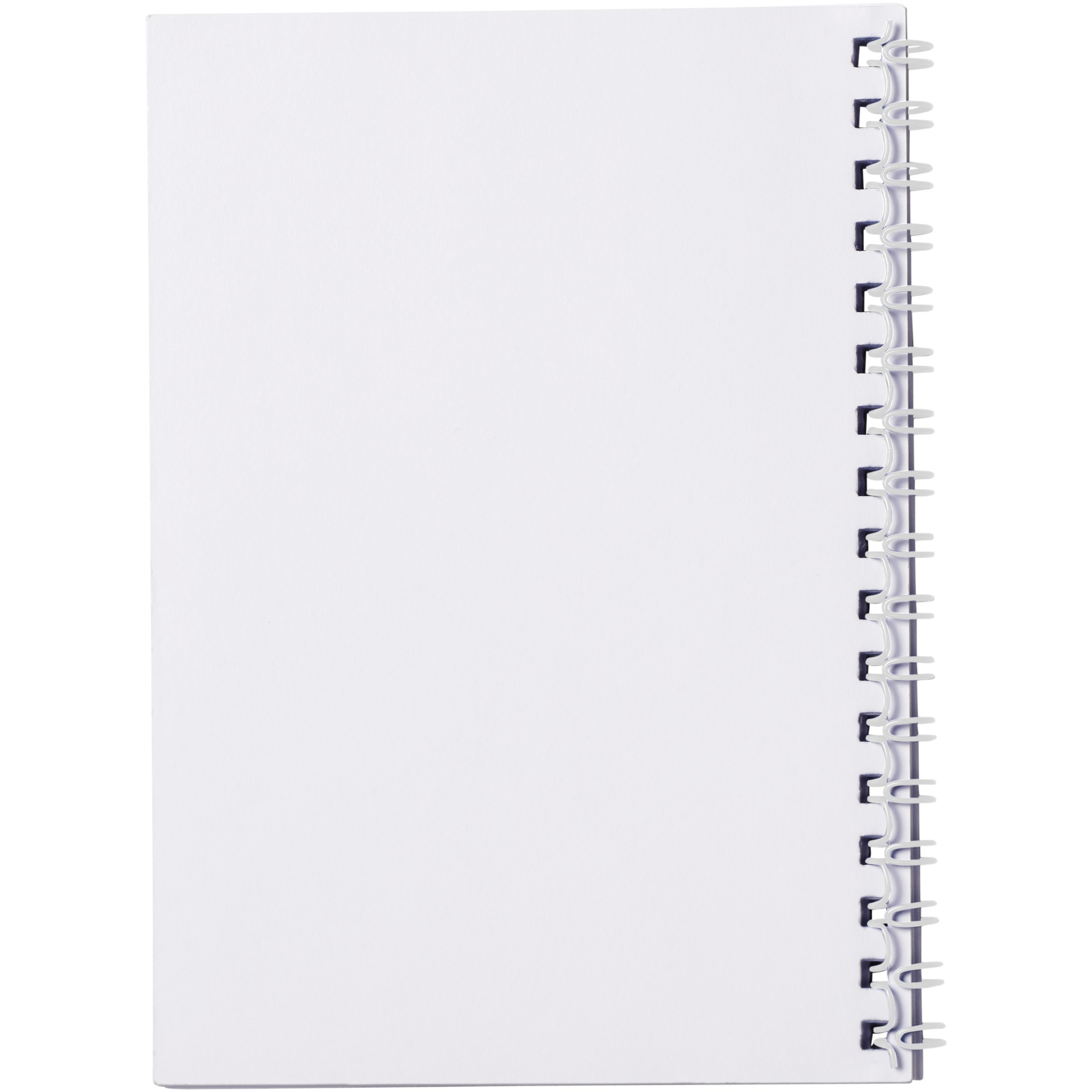 Desk-Mate®-spiraalimuistikirja, A6. Sisältää 50 kpl tyhjiä paperiarkkeja, 80 g/m2, kiiltävä kartonkikansi (250 g/m2) ja 450 micronin läpinäkyvä polypropeenikansi edessä. Musta tai valkoinen kierre. Voit räätälöidä muistikirjan täysin. Valitse esimerkiksi viivoitetut, ruudulliset tai blankot sivut - kaikki on mahdollista!
