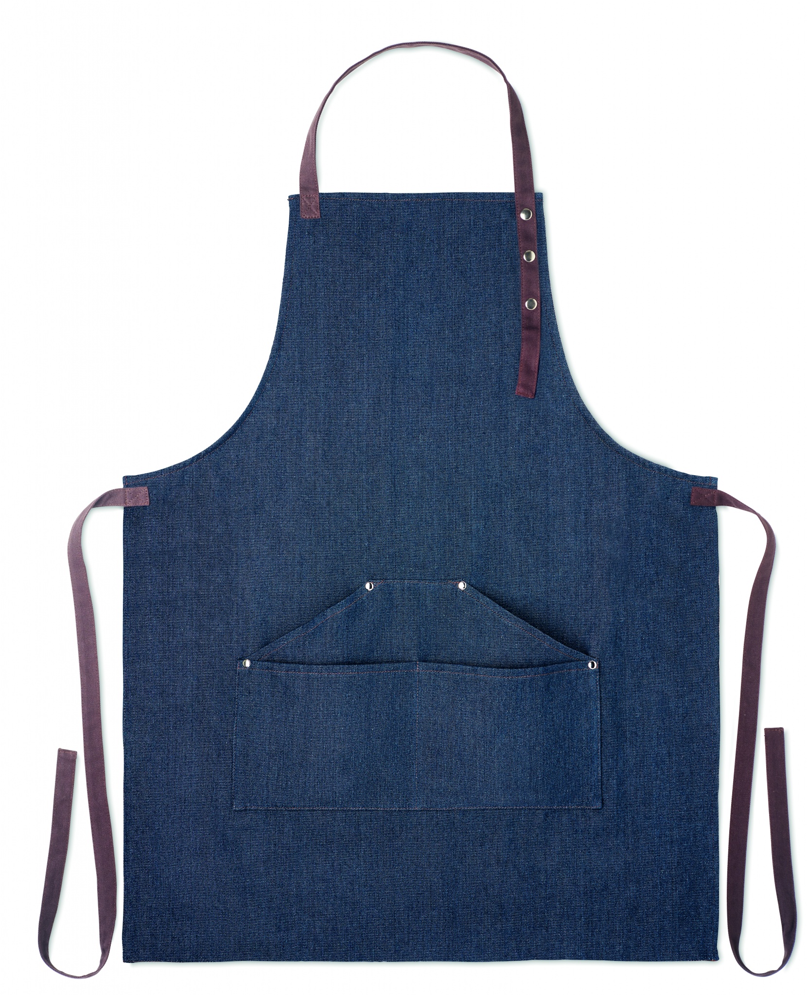 Säädettävä 240 gr/m² denim esiliina, 3 etutaskulla ja puuvilla hihnoilla. Pakattuna erilliseen laatikkoon.