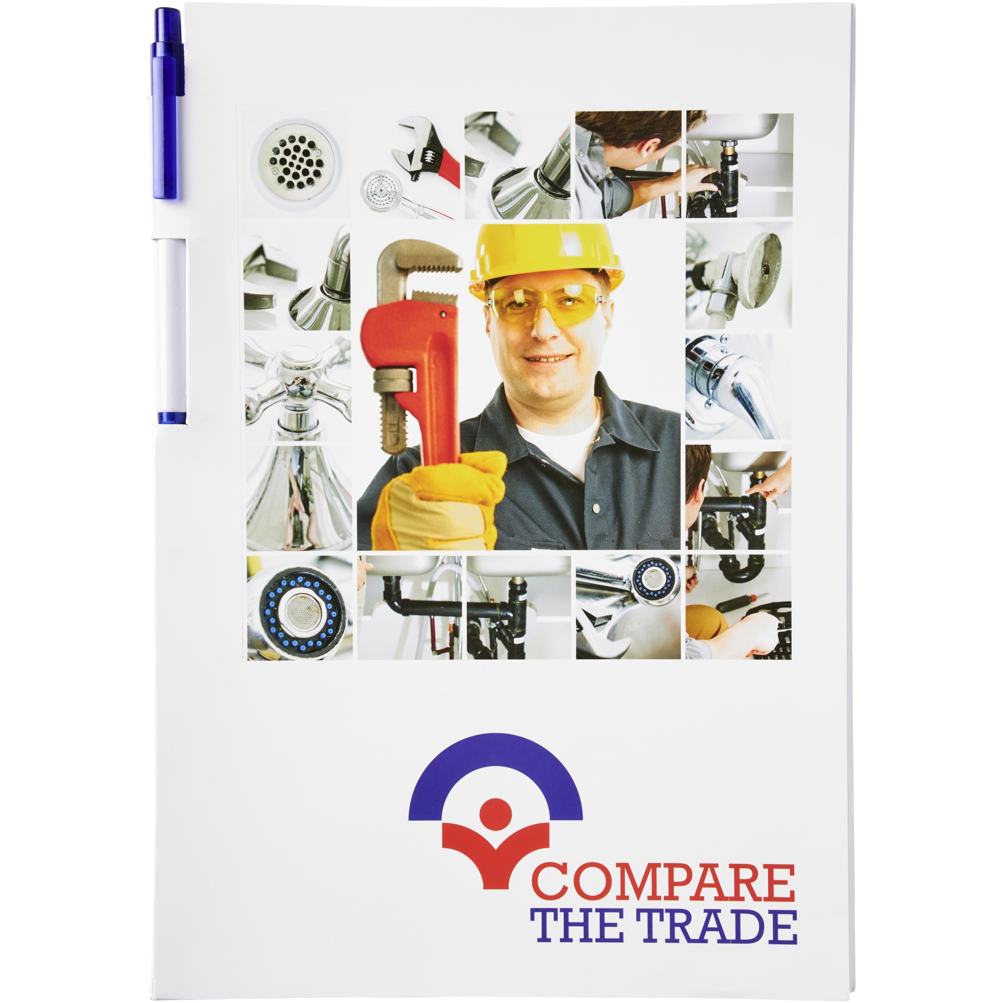 Essential-konferenssipakkaus, jossa A4-koon muistikirja ja kynä, Valkoinen/sininen