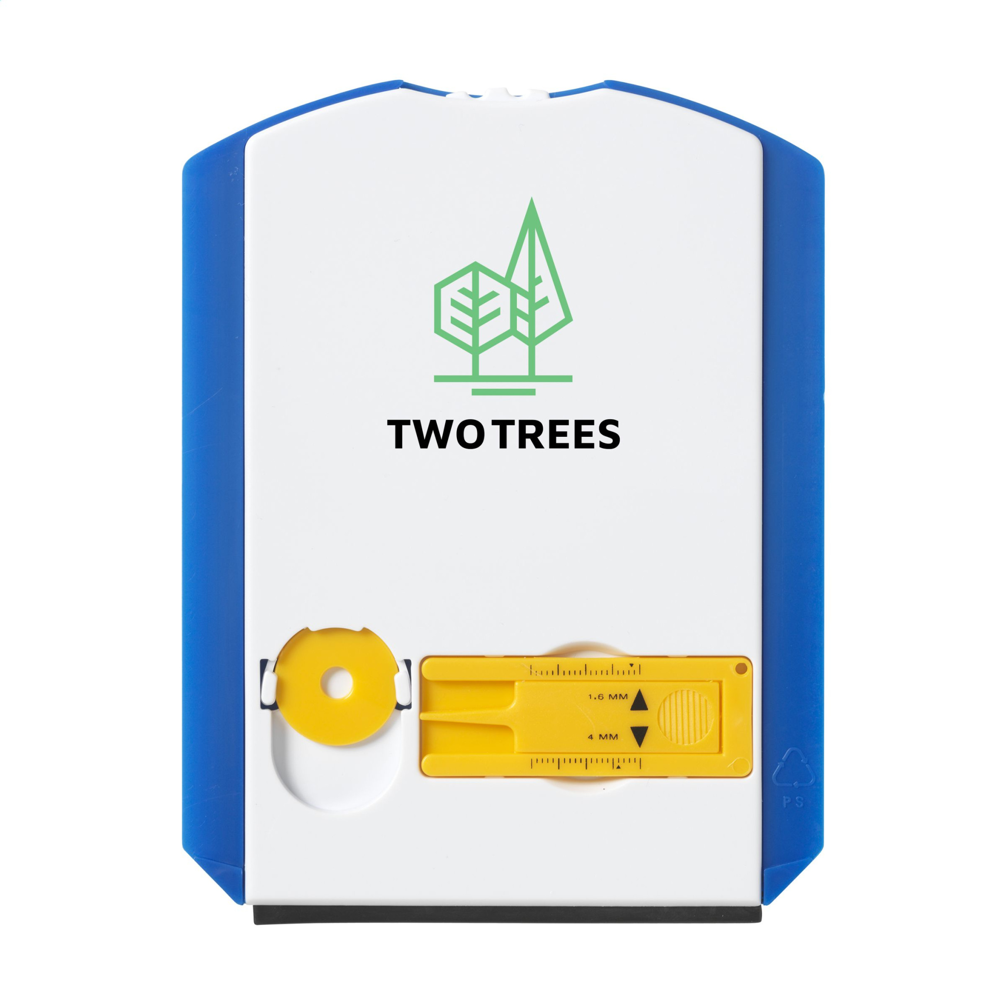 Pysäköintikiekko kestävästä muovista, jossa jääkaavin, kumipyyhin, vaunukolikko ja renkaan kulutuspinnan syvyysmittari.