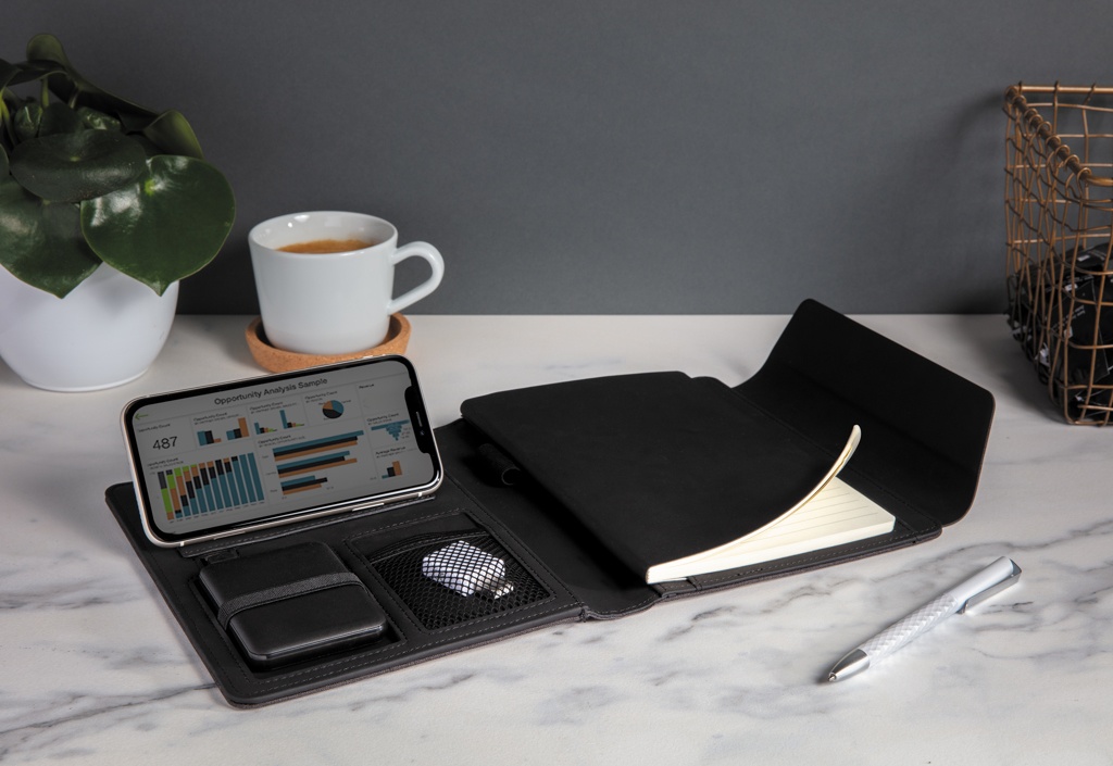 Logotrade liikelahja tuotekuva: Fiko langaton latausportfolio A5 varavirtalähteellä