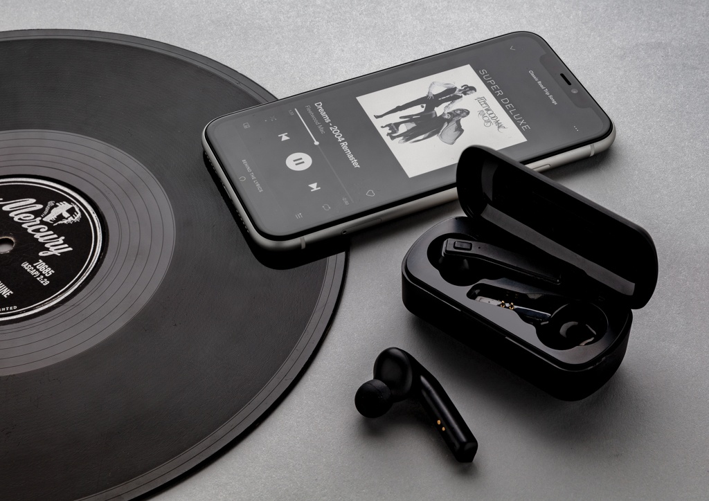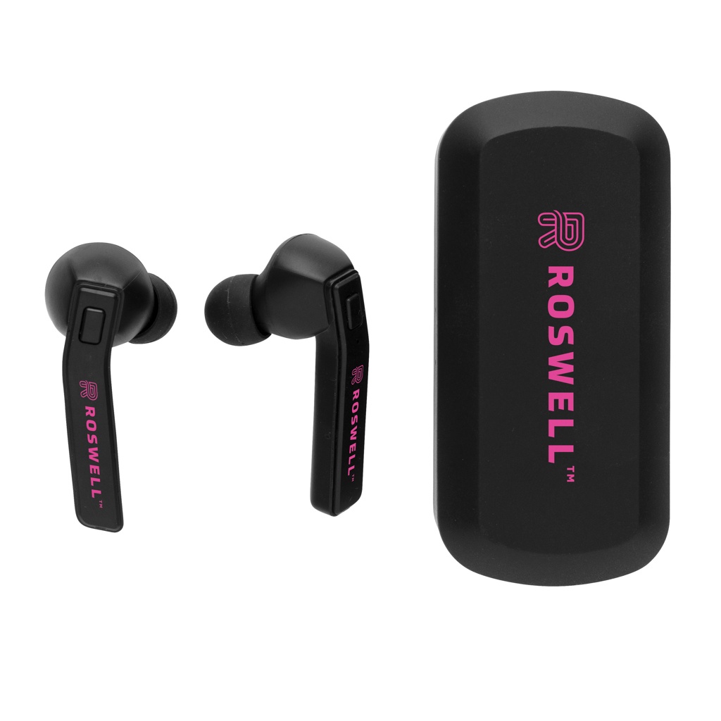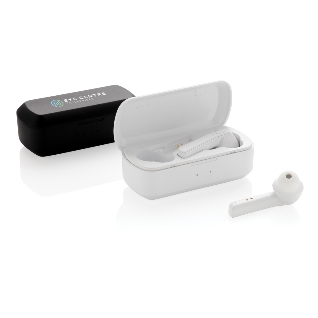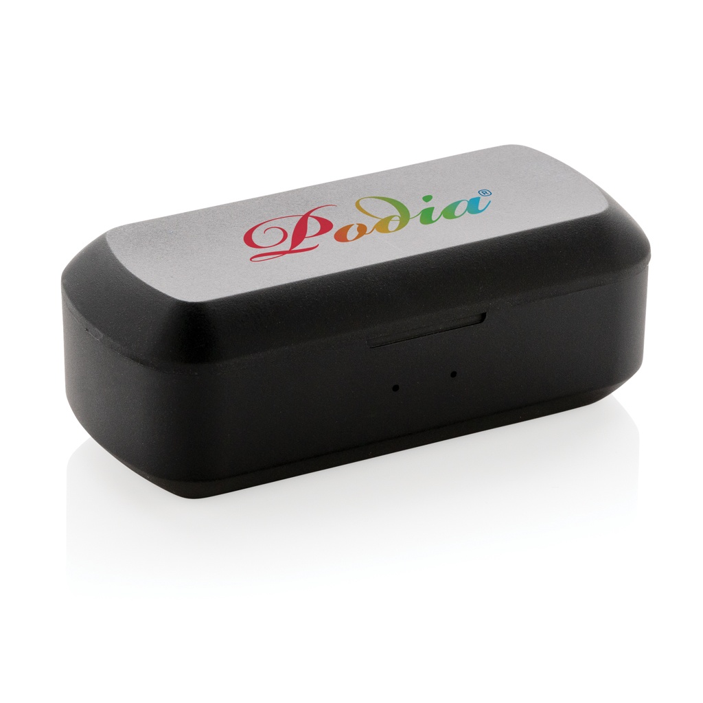 Logotrade mainoslahjat kuva: Free Flow -TWS nappikuulokkeet latausrasiassa