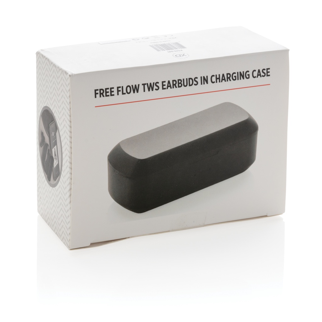 Logo trade mainostuotet tuotekuva: Free Flow -TWS nappikuulokkeet latausrasiassa